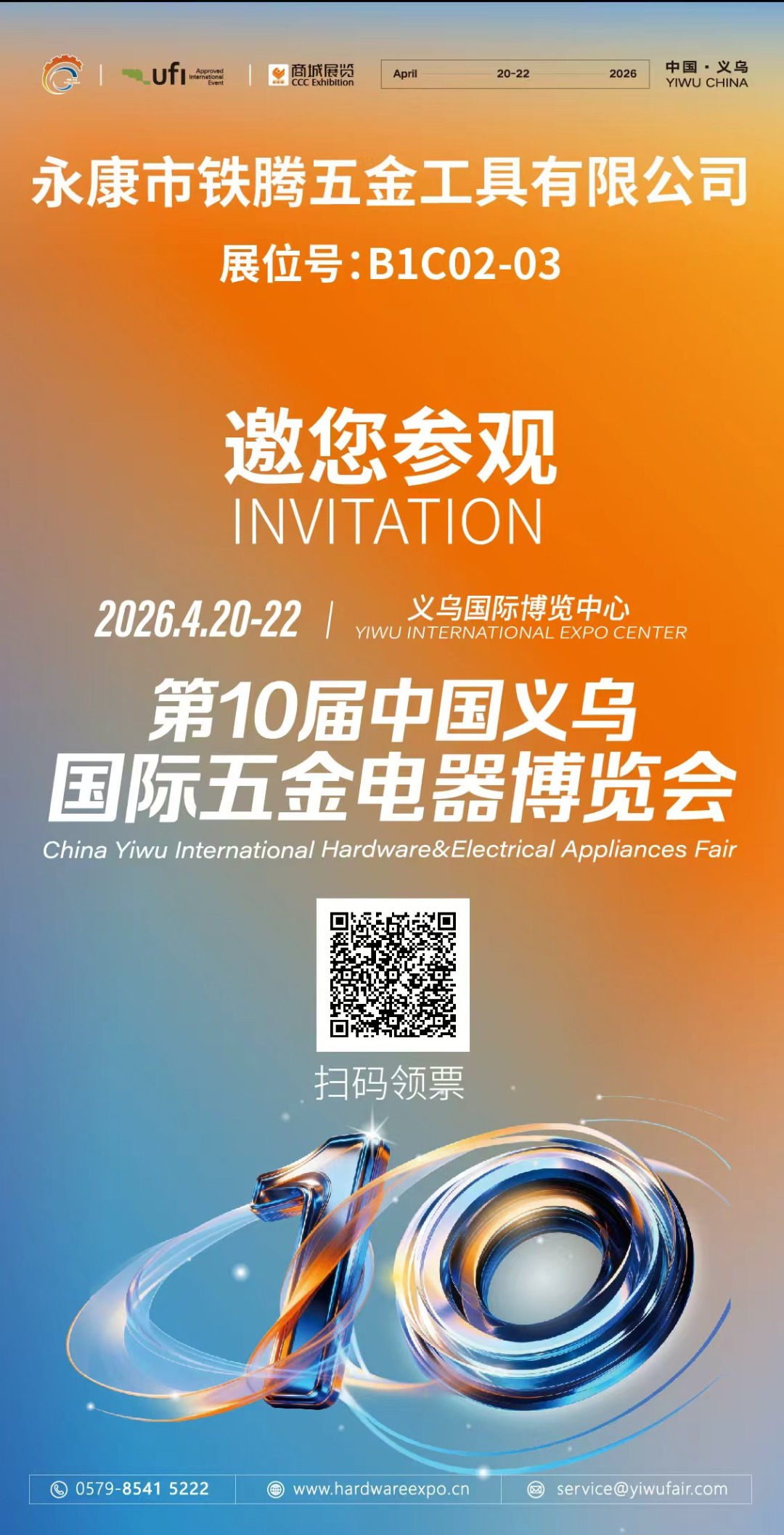 We are pleased to announce that Zhejiang Shenxin Garden Tools Co., Ltd., a subsidiary of Yongkang Tieteng Hardware Tools Co., Ltd., will be exhibiting at the 10th China Yiwu International Hardware & Electrical Appliances Fair. The event will be held from April 20 to April 22, 2026, at the Yiwu International Expo Center. We sincerely invite global partners, buyers, and industry professionals to visit us at Booth B1C02-03 and discover our latest product innovations.